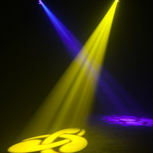 Specifications:- 12-Watt LED DMX Barrel Mirrored Scanner- Single GOBO/Color wheel: 8 fixed GOBO/Colo..